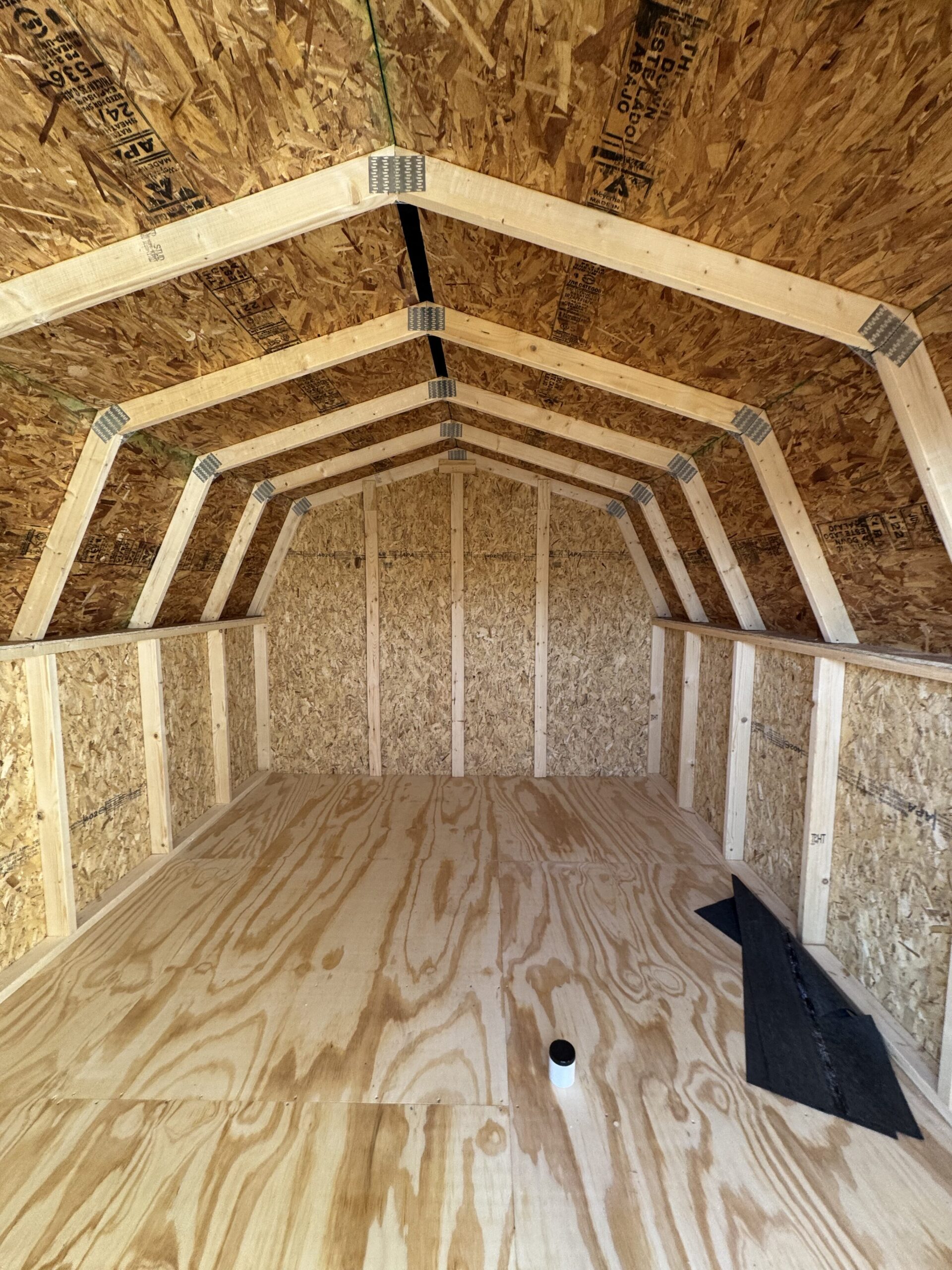 A steel roof provides superior strength and weather resistance, making it ideal for Michigan’s changing seasons. Inside, the standard 4′ loft adds valuable overhead storage space, perfect for organizing tools, seasonal items, or equipment while keeping the floor area clear.