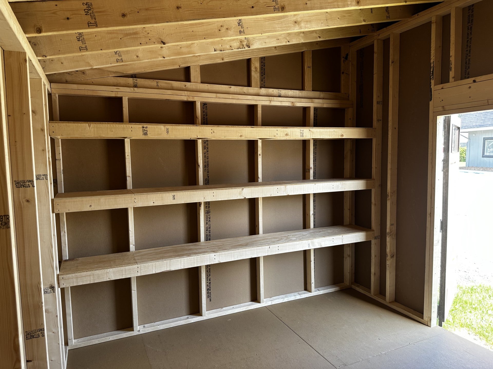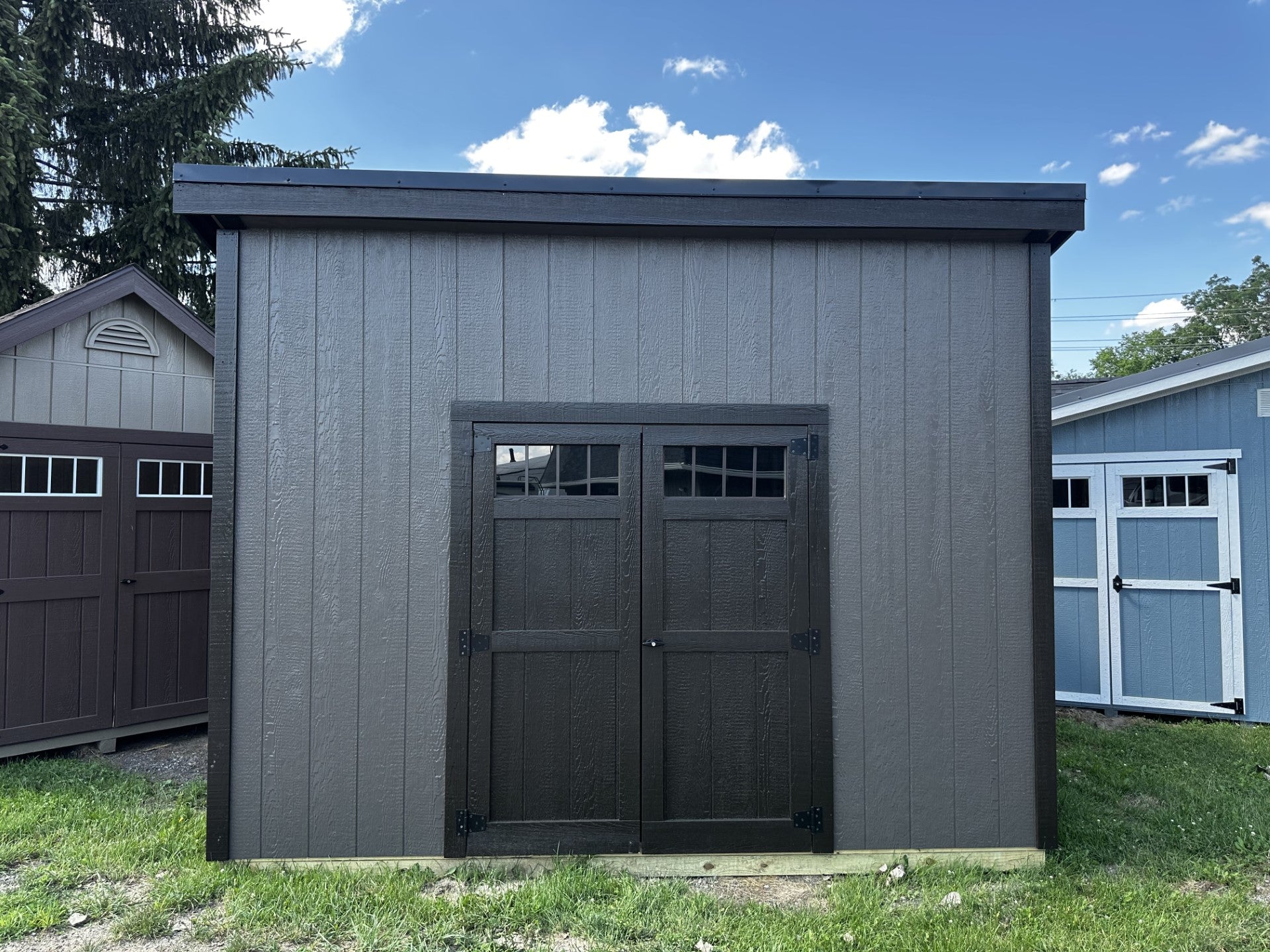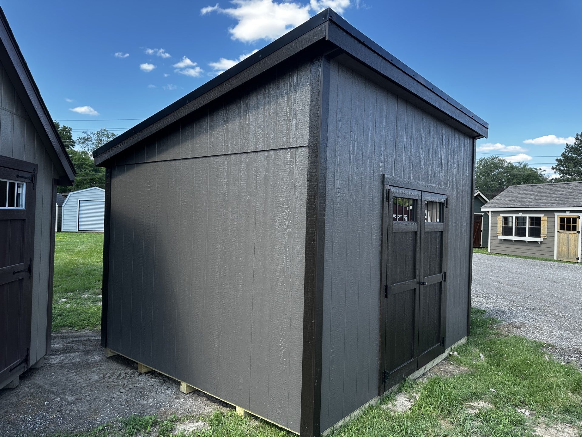 Built on Site-10×12 Addison, 5×6 Wood Double Doors, 3-10×1 Shelves, Assemble on Site