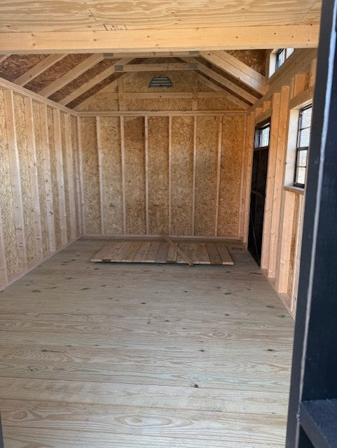 Expertly crafted and designed, the 10×16 Deluxe Cape Cod boasts dual black shingles and a stunning Monteray sand painted siding. The 8′ 3 window roof dormer, 6×6 double doors with transom windows, and 36″ entry door with transom windows provide ample natural light. Additional features include 3-21×27 windows with screens and slat shutters, 1′ overhangs and flower boxes, and a sturdy 2×8 tongue and groove treated floor. Elevate your outdoor space with this deluxe model.