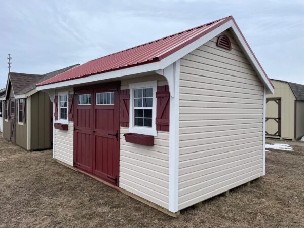 10×16 Deluxe Carriage House, Vinyl Siding, Steel Roof, 2-21×27 Windows with Screens and Shutters, 6×6 Double Doors w/Transom Windows. Financing and No Credit Check Rent to Own Available.