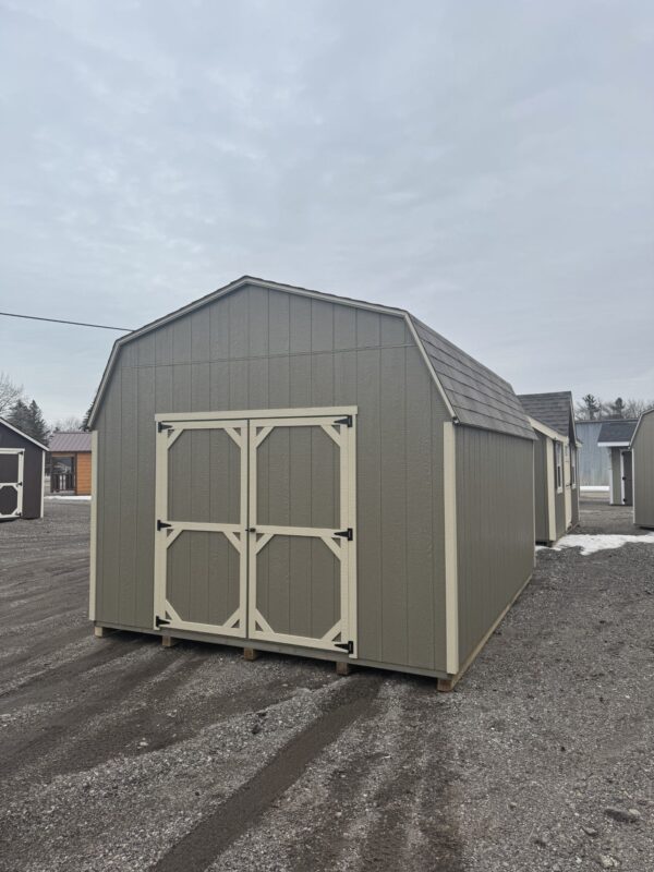 This 12×16 10ft Pro Series storage shed features a 4ft loft and clay painted siding with almond trim. The addition of weatherwood shingles provides reliable protection against the elements. Equipped with 6×6 double doors and includes delivery. Financing and no credit rent to own options available. Expertly designed for all your storage needs.