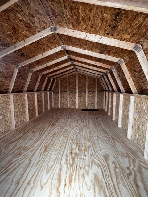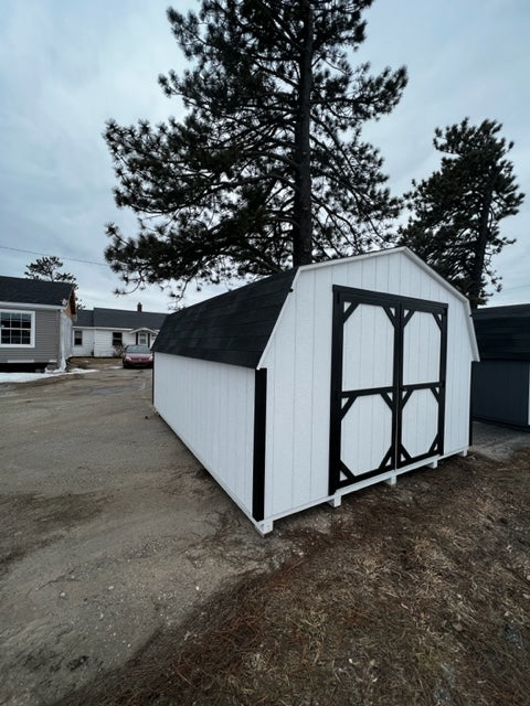 The 12×16 8ft Pro Series features 6×6 double doors and 25-year dual black shingles. The white painted siding adds a touch of elegance. Delivery is included and financing and rent-to-own options are available. This product is currently in stock, making it a convenient and reliable choice.