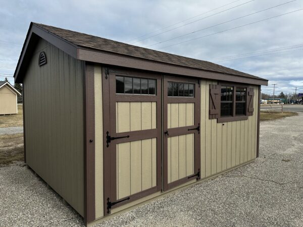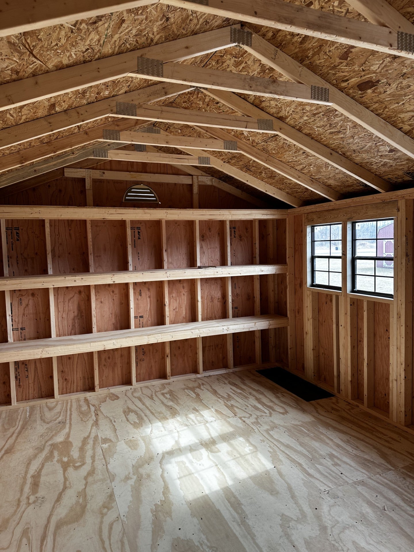 Expertly crafted and delivered statewide, the 12×16 Deluxe Cottage Workshop offers ample storage and organization with included shelves. Enjoy natural light and fresh air from the 2-21×27 windows with screens and shutters. Upgrade your workshop today. Financing and No Credit Check Rent to Own Available