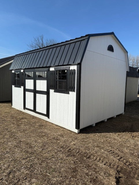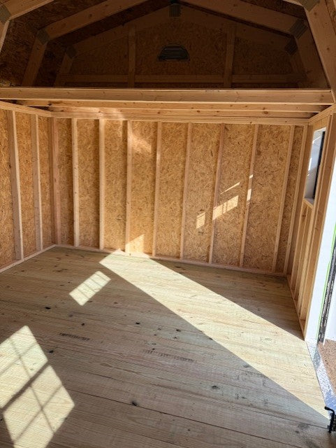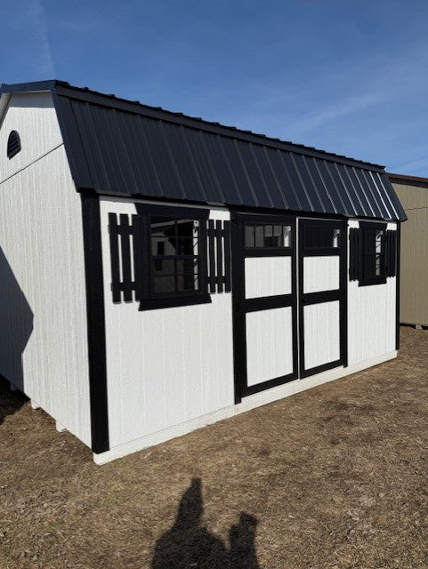 12×16 Dutch Barn, 6×6 Double Doors w/Transom Windows, 4ft Loft, 2×8 Treated Plank Floor, Slat Shutters Financing and No Credit Check Rent to Own Available. Delivery Included