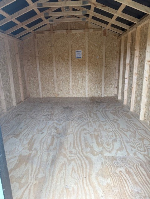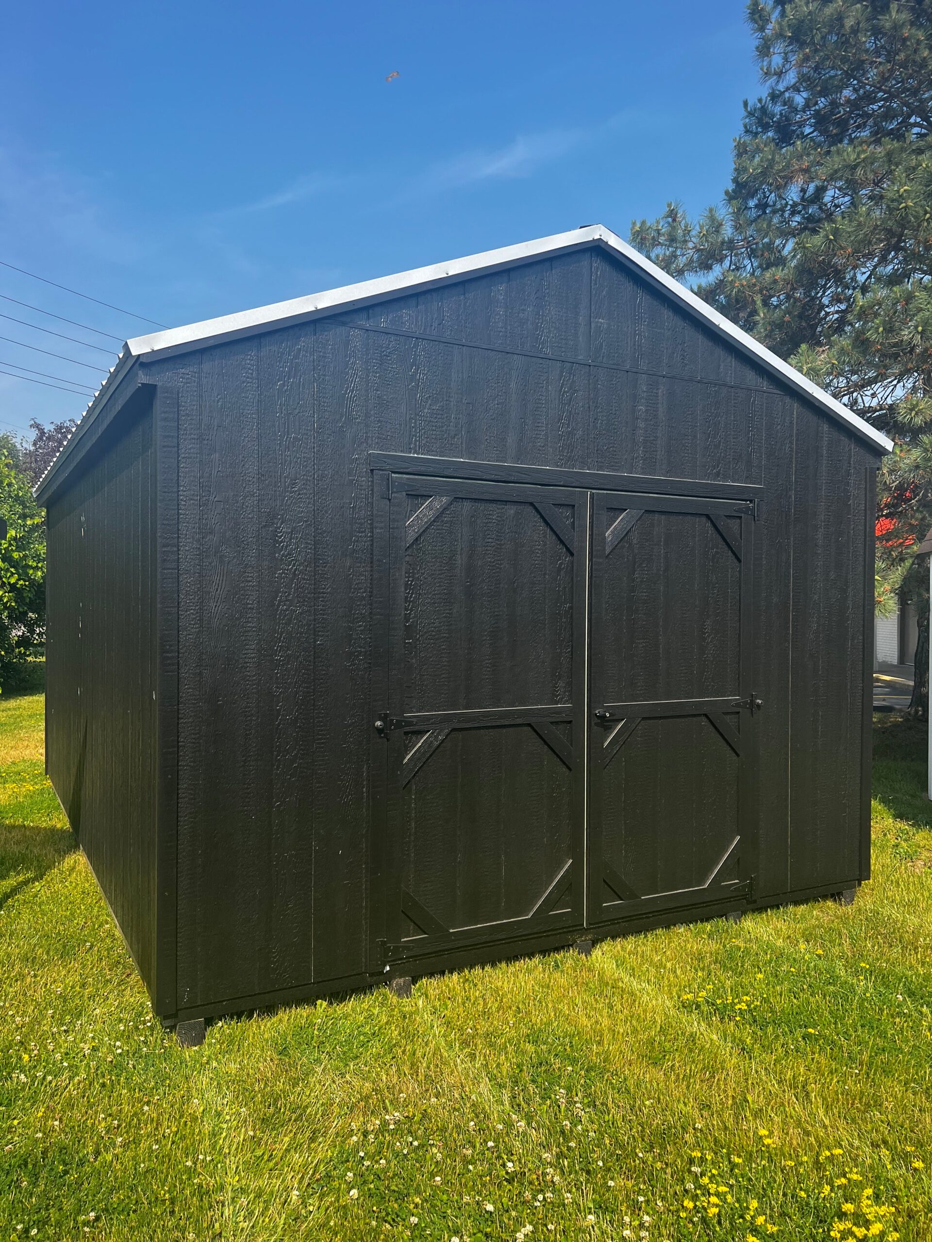 Repo-12×16 Pro Cottage, 6×6 Key Locking Double Doors, Metal Roof. Black Siding, Black Trim, Galvalume Roof. Sold New for 5994.00, Customer only had building for 60 days then had to move and couldn’t take it.