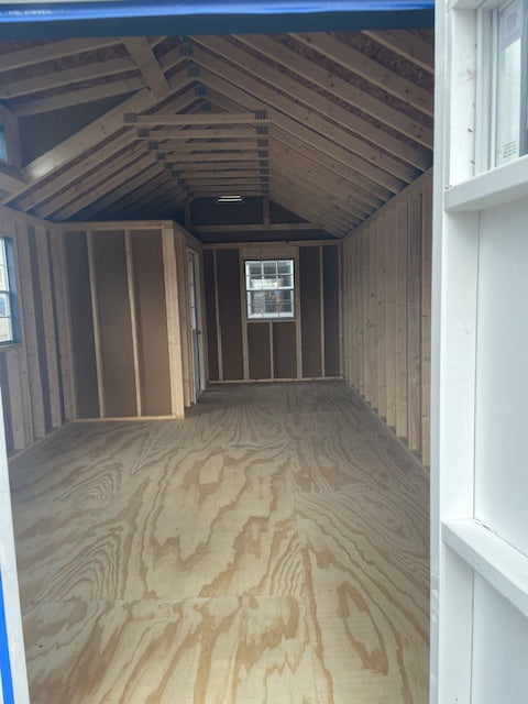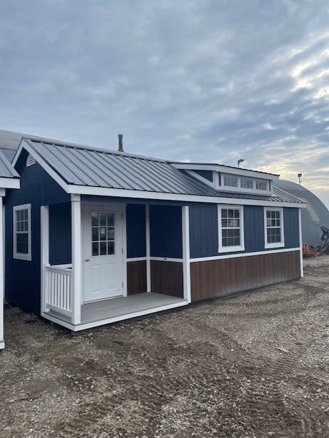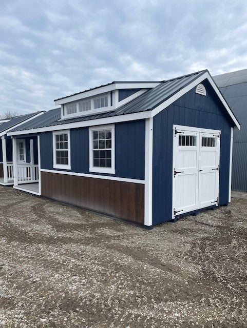 Transform your outdoor space with our 12×24 Deluxe Cape Cod. This multi-functional shed can be used as a she shed or man cave, complete with double doors and a 9 Lite pre-hung door for easy access. The 8×4 nook porch with railing and 3 window roof dormer add charm and functionality, while the metal roof provides durability. Delivery is included and we offer financing and no credit check rent to own options.