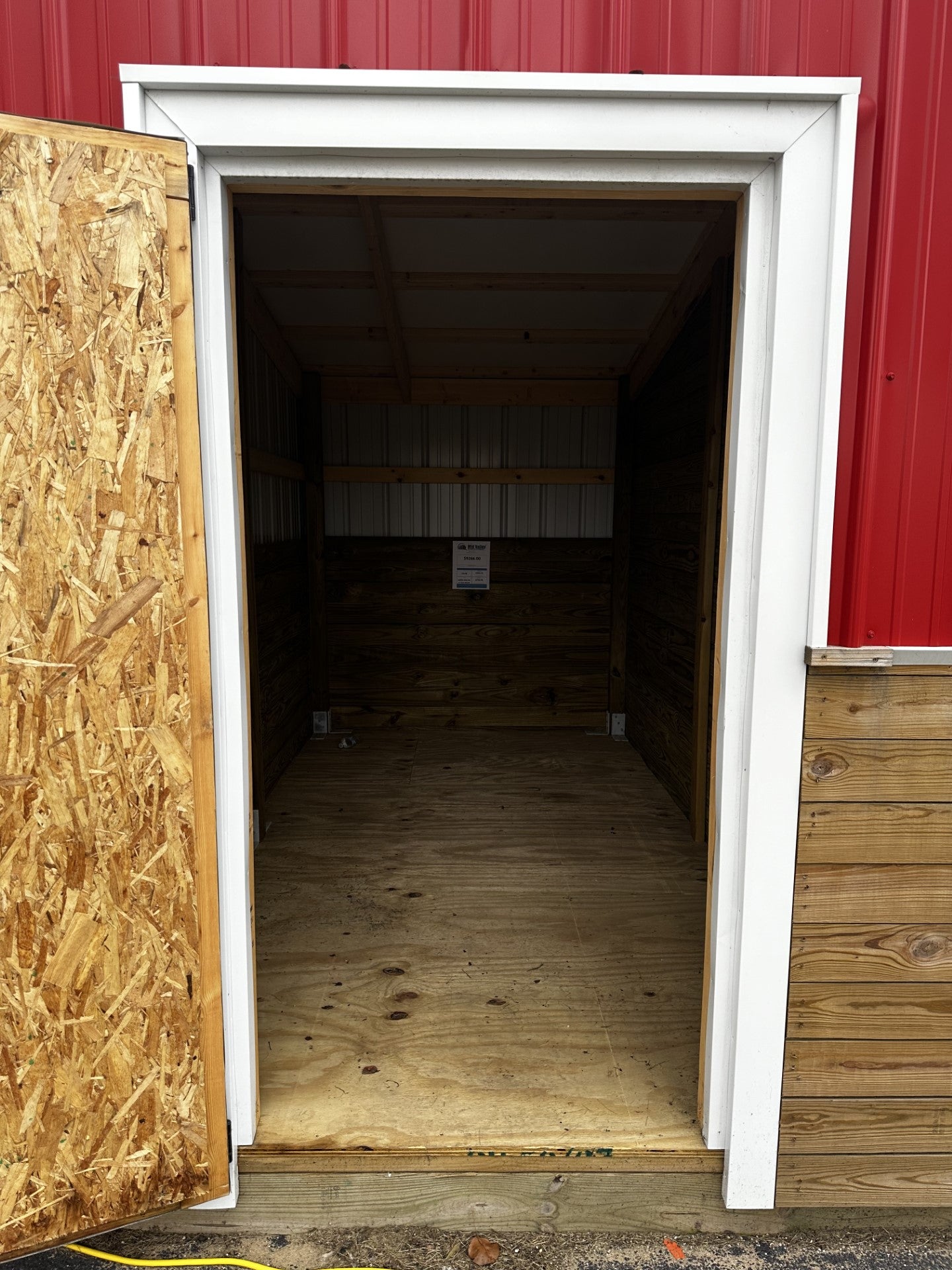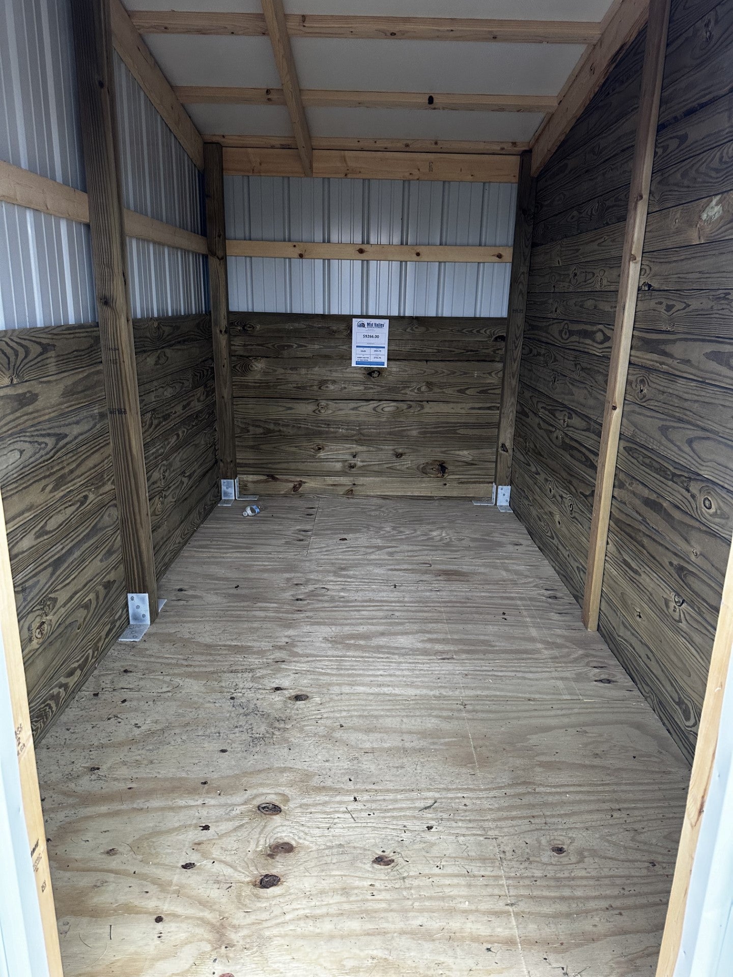 Enclosed horse run in with two sets of dutch doors and a tac room. Red with white trim and white roof. Has 2×6 treated kick plate up 4′. Rent to Own and conventional financing available. Price includes delivery to your site.