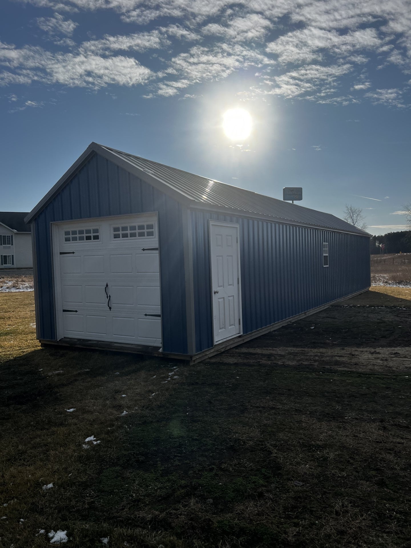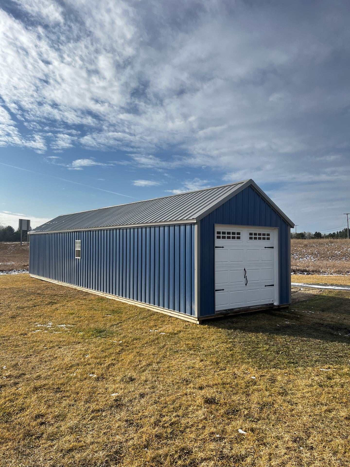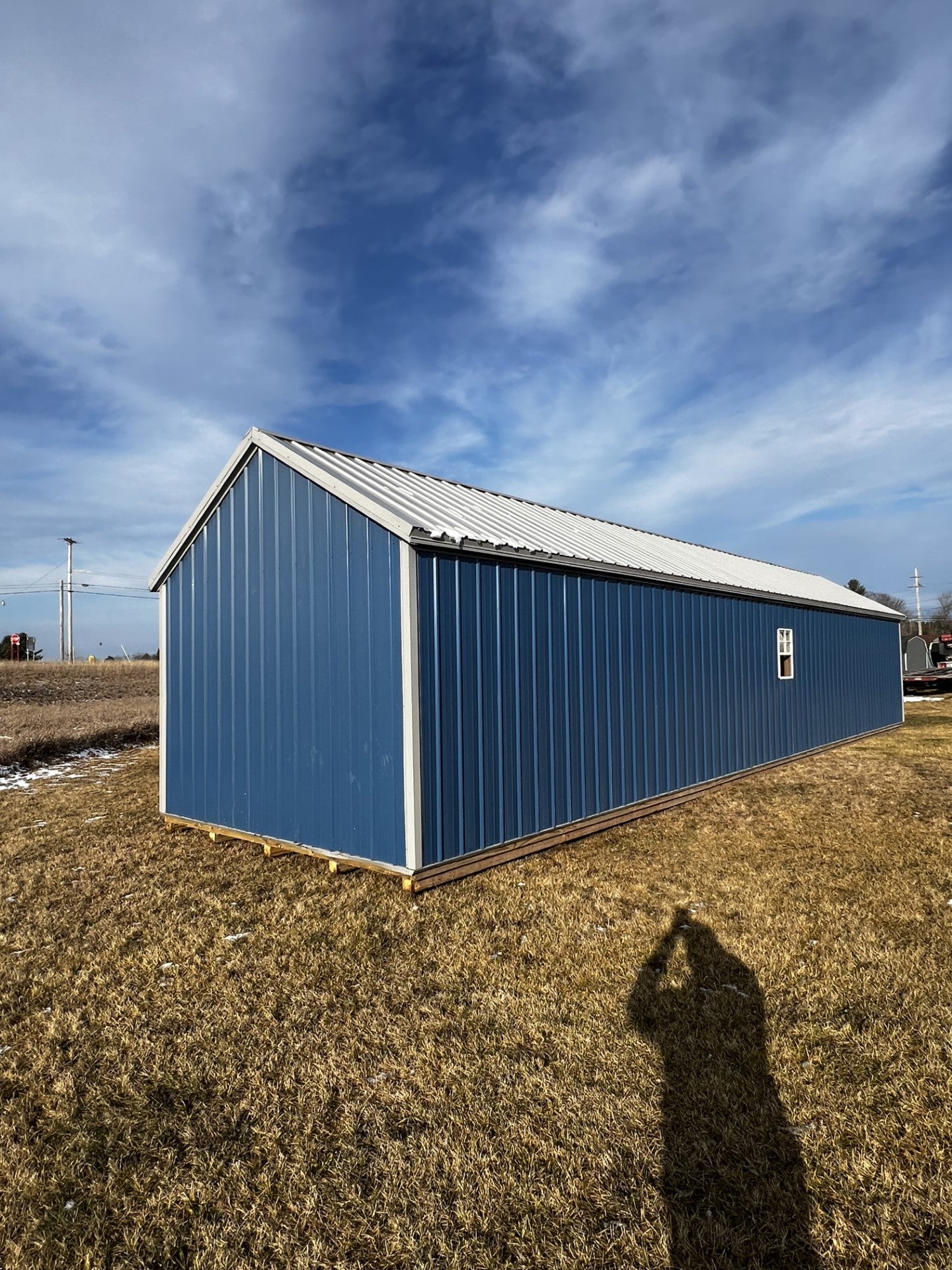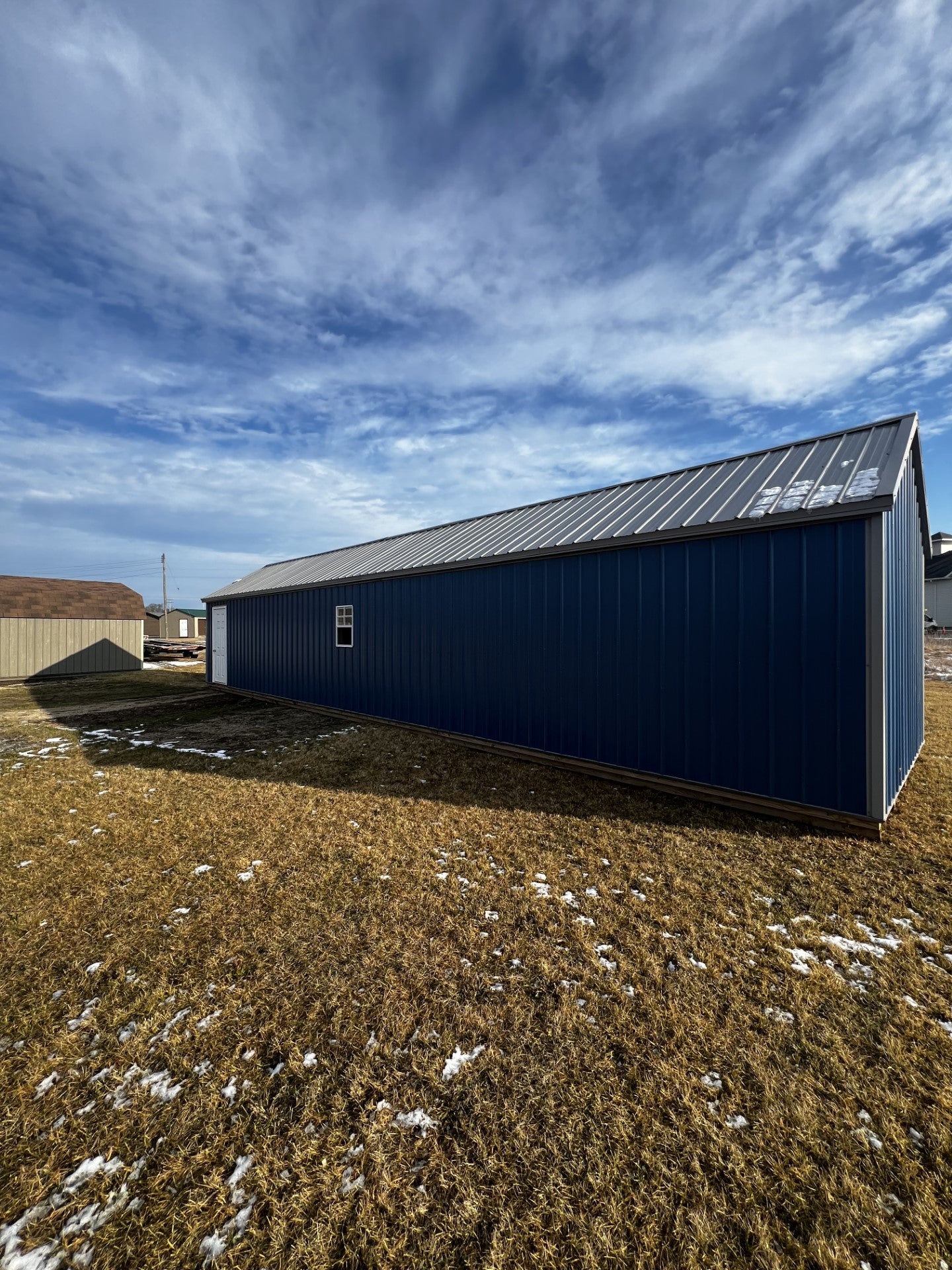 This 12×48 metal garage features a 6×12 roof pitch and a 3/4 inch pressure treated floor for durability. It also includes a pre-hung entry door, 8×7 sectional door, and 2-21×27 windows with screens for added convenience. With its metal siding and roof, this garage provides long-lasting protection for your vehicles and storage items. Financing and No Credit Check Rent to Own Available
