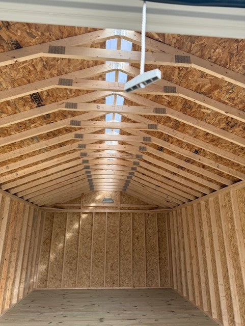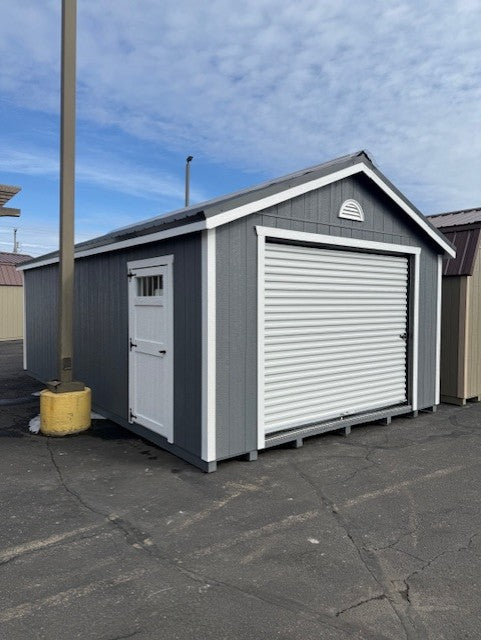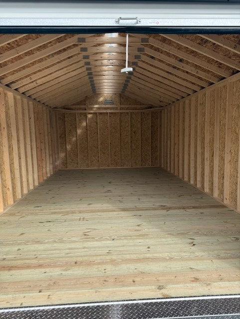 Upgrade your storage options with our 14×24 Deluxe Garage. This spacious garage features a 2×8 tongue groove treated floor, 9×7 roll up door and 36″ passage door, and a wide trim package for added aesthetics. With no credit check rent to own and financing available, this garage comes with delivery included. Maximize your space and organization with this deluxe garage.