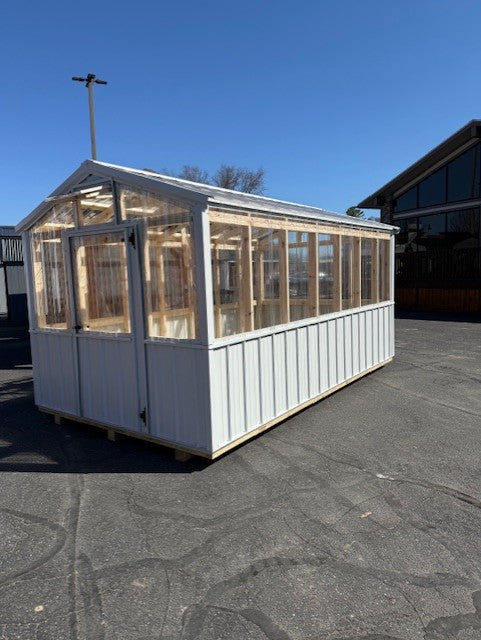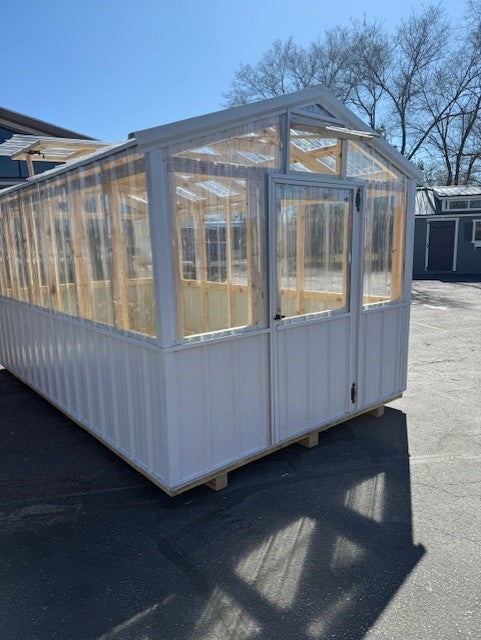 This 8×14 greenhouse features sturdy metal construction and clear panel sides and roof for maximum sunlight. Rent to own and financing options available, with delivery included. Perfect for any gardener looking to expand their growing season.