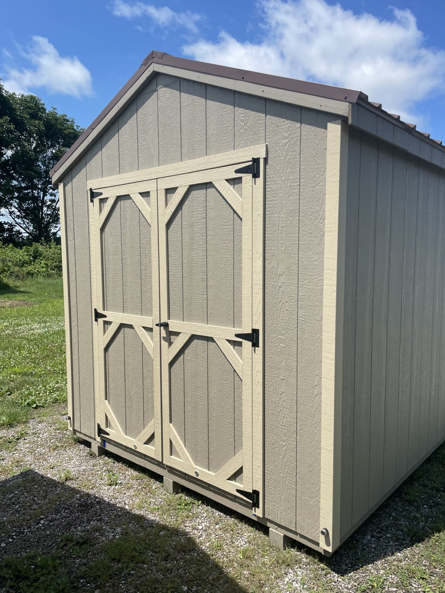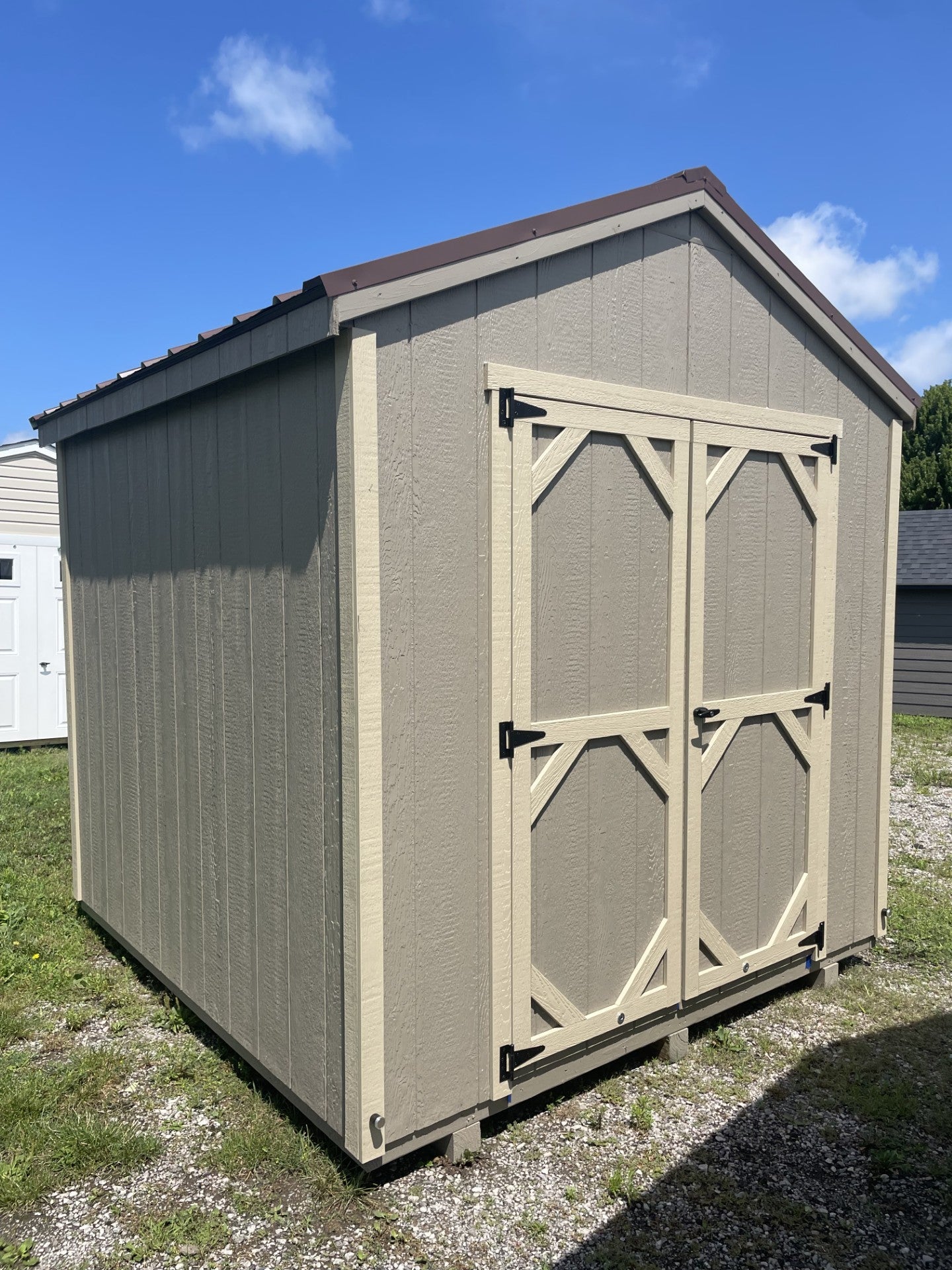 8×8 Pro Cottage Workshop, 56″ Double Doors, Black Metal Roof, White Siding, and Black Trim