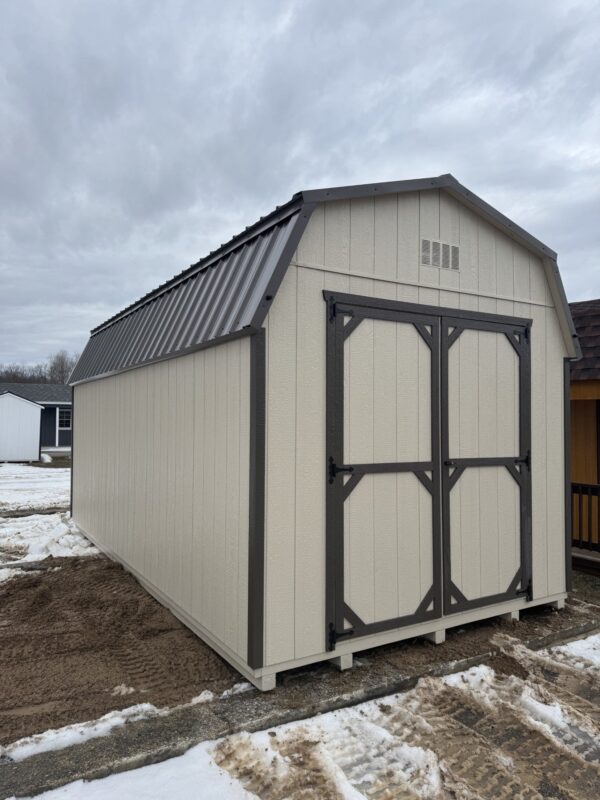 Burnished Slate Metal Roof, Monteray Sand Paint , Burnished Slate Trim, 4′ Loft included. 7′ tall double doors (Great for golf carts, and side by sides.) No credit check and financing available.